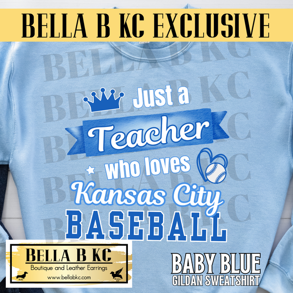 **BBKC Exclusive** Kansas City Baseball - Just a Teacher who Loves KC Baseball Tee or Sweatshirt