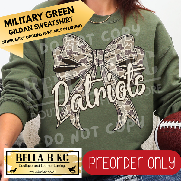 **PREORDER ONLY** Patriots Camo Coquette Bow - Tee or Sweatshirt - 1 Week Turn Around from Date of Order
