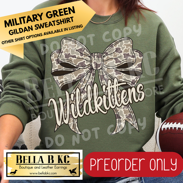 **PREORDER ONLY** Wildkittens Camo Coquette Bow - Tee or Sweatshirt - 1 Week Turn Around from Date of Order