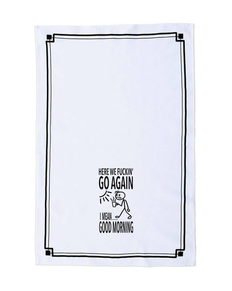 "Here We Fuckin’ Go Again, I Mean Good Morning" Funny Kitchen Towel