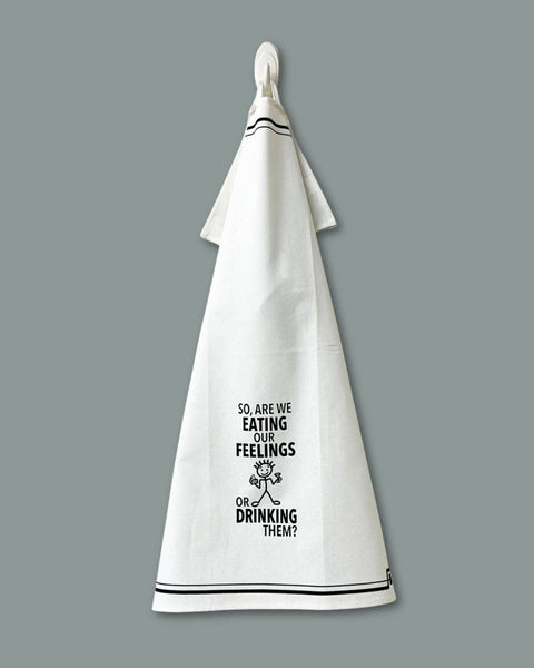 "So, Are We Eating Our Feelings or Drinking Them?" Funny Kitchen Towel