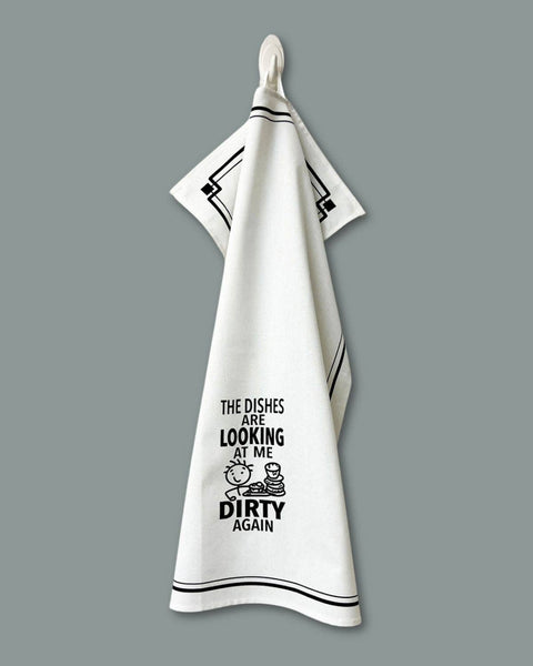 "The Dishes Are Looking at Me Dirty Again" Funny Kitchen Towel