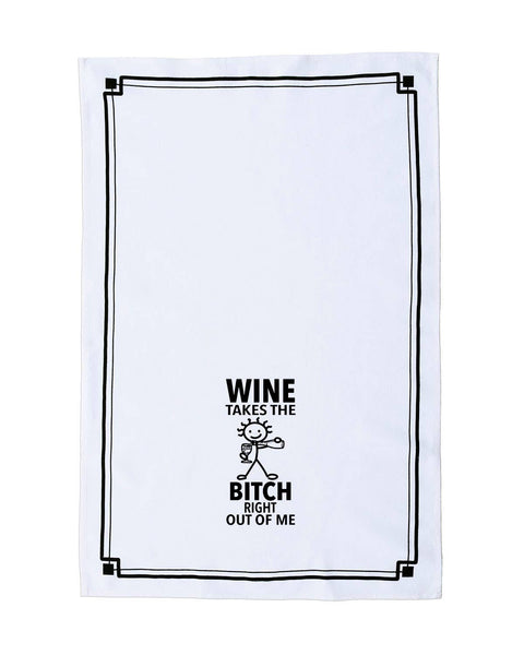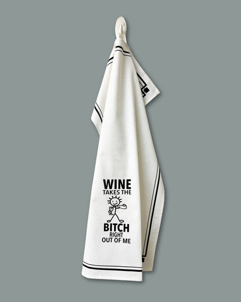 "Wine Takes the Bitch Right Out of Me" Funny Kitchen Towel