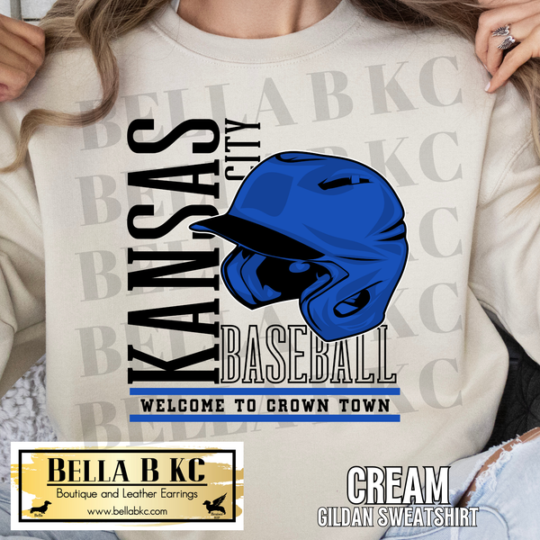Kansas City Baseball Welcome to Crown Town Helmet Tee or Sweatshirt