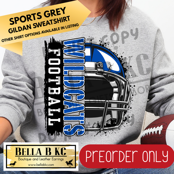 **PREORDER ONLY** Wildcats BLUE Football Split Helmet - Tee or Sweatshirt - 1 Week Turn Around from Date of Order